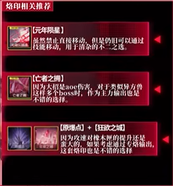 对于输出角色而言可用烙印也就这几套,主要还是根据需求进行灵活选择