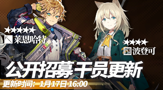 《明日方舟》将于01月17日10:00 ~16:00的更新维护中对游戏内【公开招募】进行新增干员。具体新增干员及标签强制刷新注意事项如下: