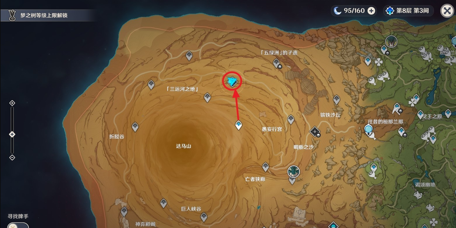 五绿洲之殿堂秘境位置如下图所示。
