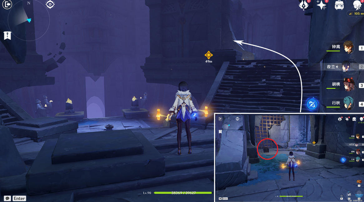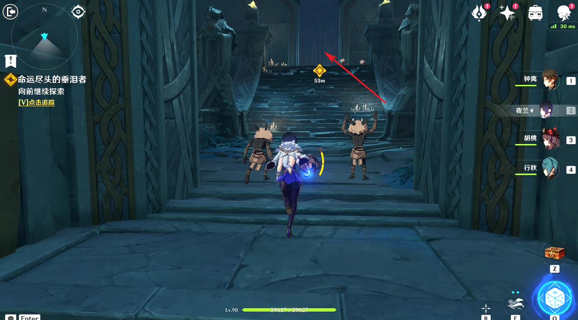 3、拿完宝箱之后,跟着指引穿过紫色的屏障来到下一个空间