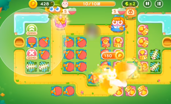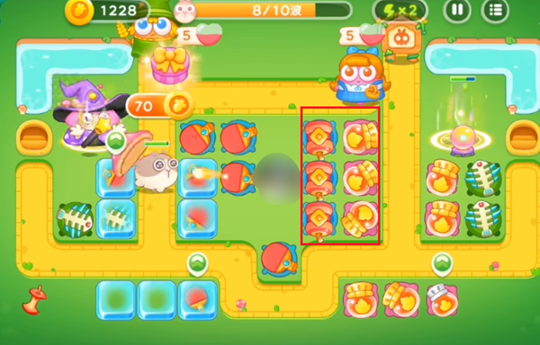 7、第八波的时候,在中间多放置乒乓球和火炮,一有钱就去建造并且升级,记得去击打女巫。