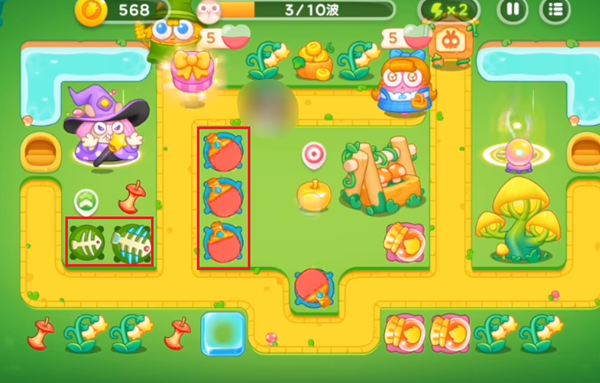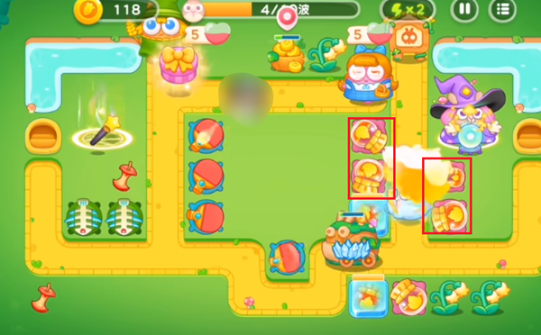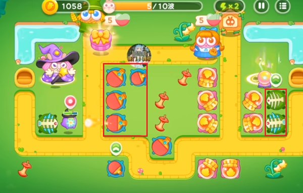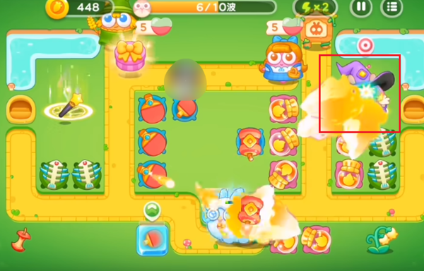 6、第六波的时候就有冰冻的兔子出来,我们需要放置鞭炮炮塔来加快解除控制。