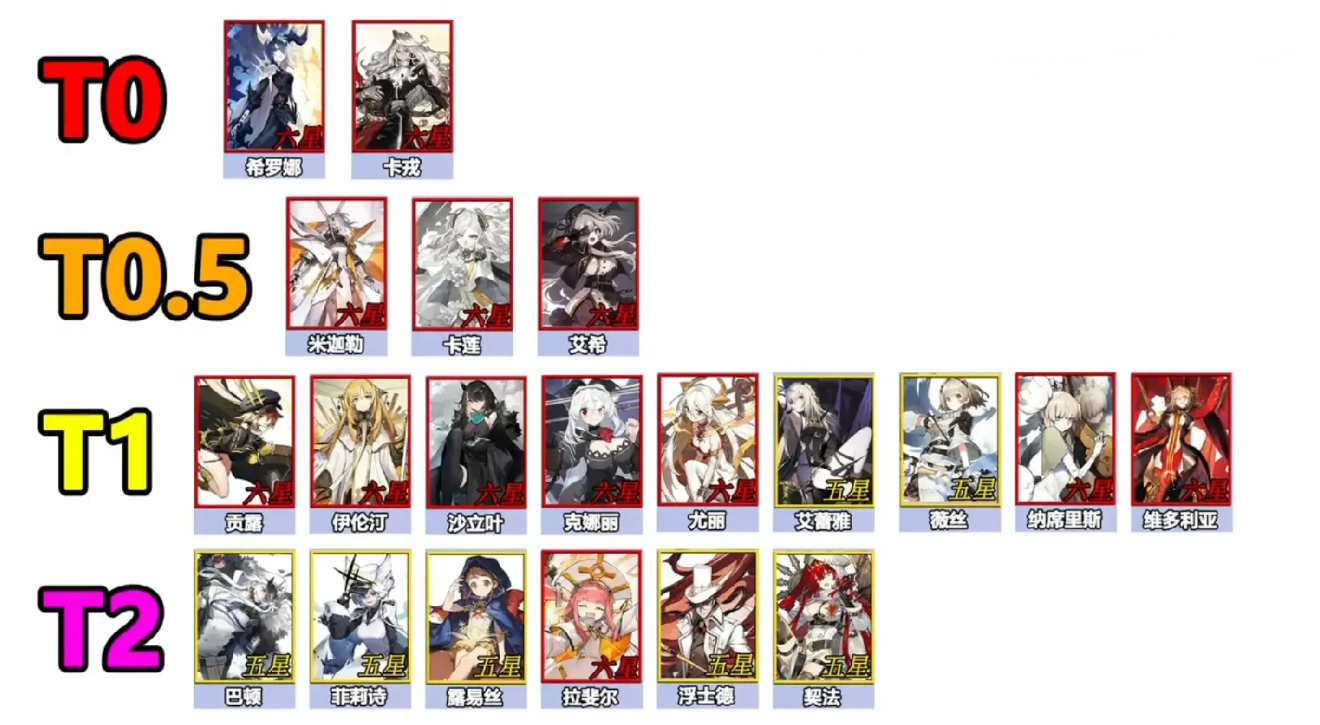 T0:希罗娜,卡戎 T0.5:米迦勒,卡莲,艾希