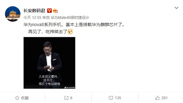 但今天 @长安数码君 发布最新爆料信息称,华为 nova 8 系列手机,基本上是搭载华为麒麟芯片了。